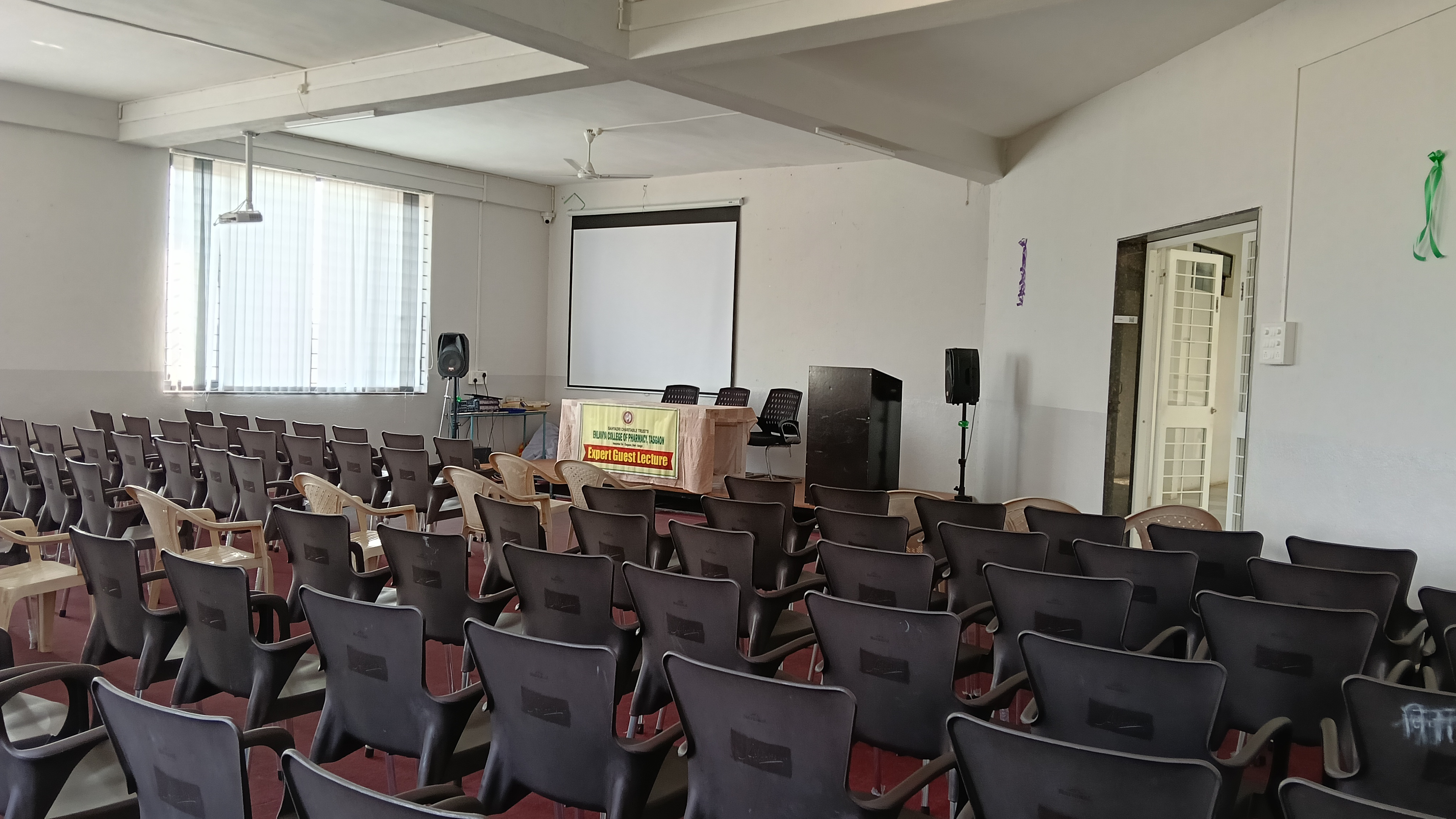 The main building is for academic purpose with all requirements of Pharmacy College. A separate cafeteria and playground in front of the academic building. A multipurpose hall is adjacent to the college building.
