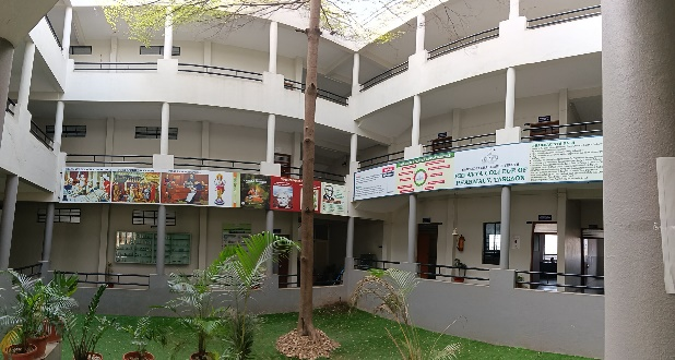 It is an L shaped college building with a central courtyard surrounded by wide passage which connects all rooms.